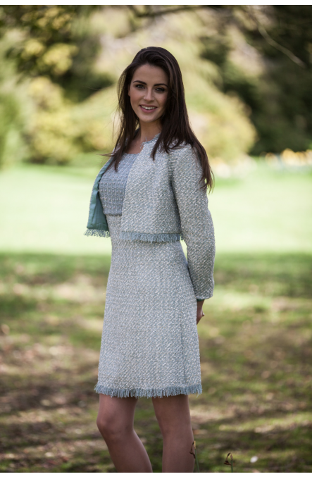 A tailored shift dress with flattering empire line, shown with the matching Coco cropped straight cut jacket.