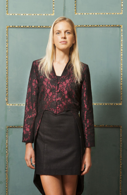 The Jenny Tailcoat, a feminine twist on the male tailcoat, fastened with button’s or antique zip.