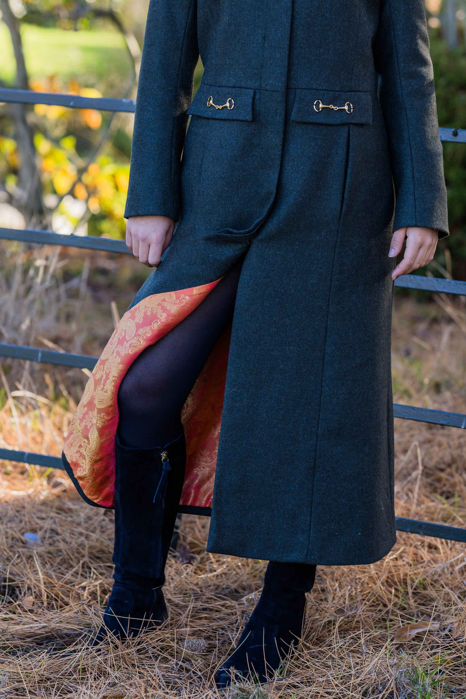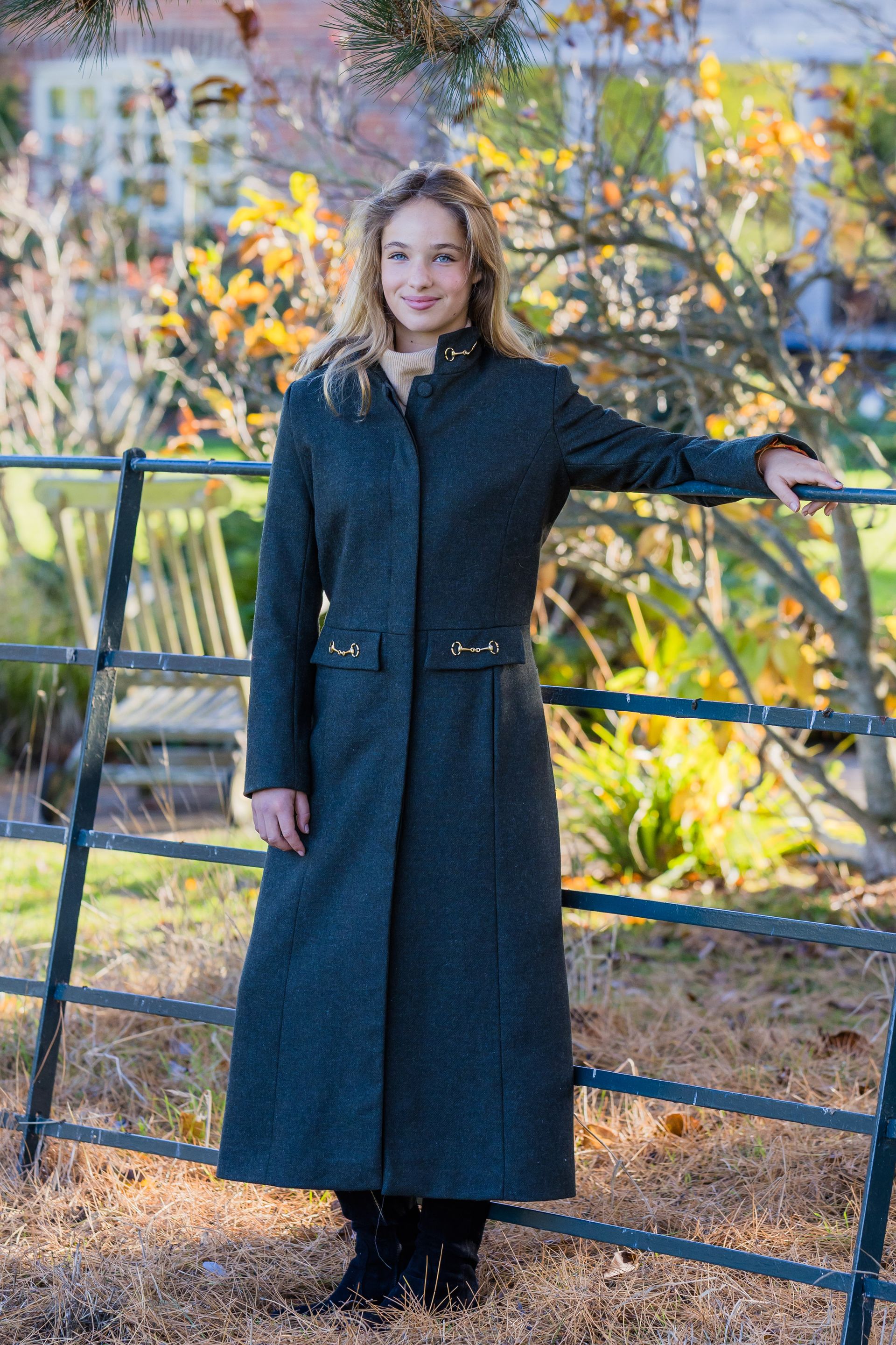 Step out in timeless elegance with our full length stylish Libby coat, designed to combine classic tailoring with modern sophistication. Crafted from premium materials for warmth and comfort, this coat features refined snaffle detailing on the pockets, adding a subtle equestrian inspired touch.